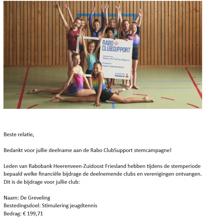 Wij bedanken iedereen die een stem op onze vereniging heeft uitgebracht. Op 28 juni hebben we hiervoor de jeugdleden al een mooi zomertoernooi kunnen aanbieden (zie ook het nieuws daarover) en zullen we in het najaar nogmaals een leuk feestje voor ze kunnen geven.