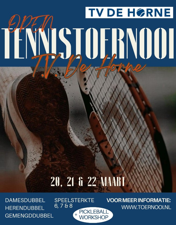 Of TV de Horne Open 2026, van 20 tm 22 maart, inschrijfsluitingsdatum 13 maart.